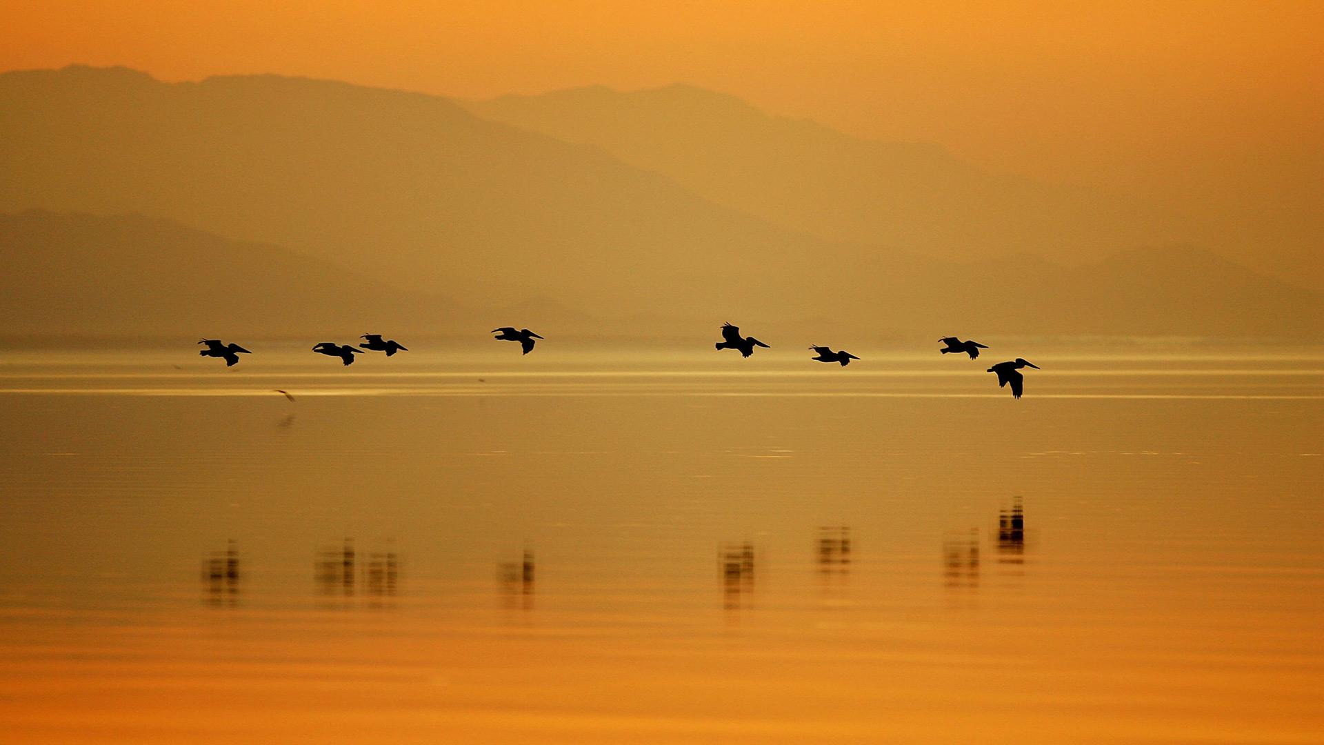 Pelicans at Sonny Bono Salton Sea National Wildlife Refuge, 加利福尼亚州 (© David McNew/盖蒂图片社)